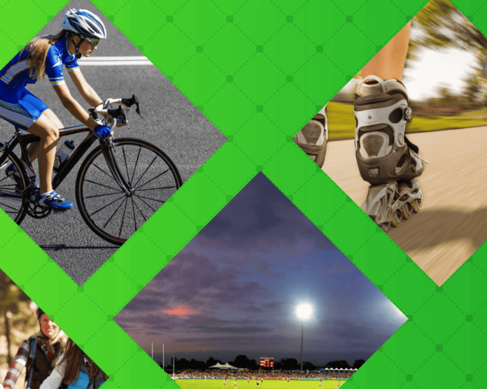 The park caters for wheeled sports with its banked criterium track, pump track, skate park, and mountain bike trails.