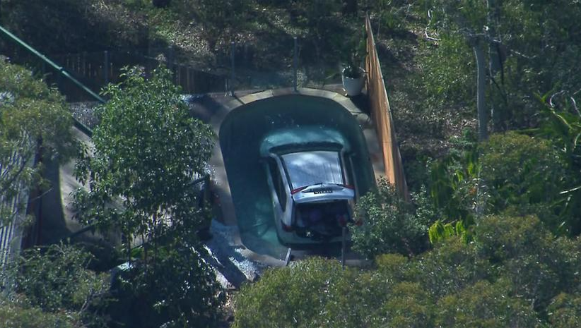 A car crashed into a suburban backyard pool in Shailer Park on the morning of Friday 25 August.