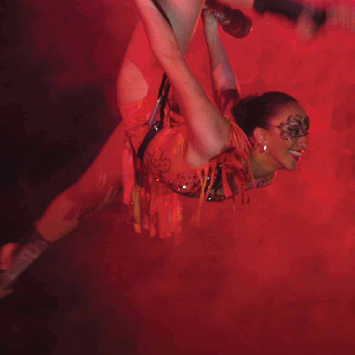 FEATURE PHOTO: provided, Ashton Entertainment (Left) Ms Ashton-Rodriguez with her co-performer Jefferson Amaral. (Right) Ms Ashton-Rodriguez performing acrobats.