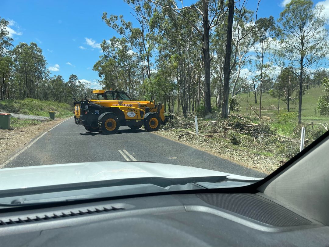 Photo: Jimboomba’s Nathan Lencz has offered his 12-tonne telehandler free of charge to help clear debris. It has a 4-tonne lifting capacity. It is one of the many good deeds being done in the community to help out.