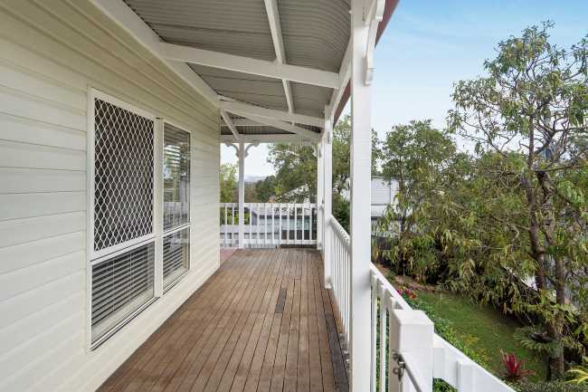 High on the hill at Chantilly Heights, its two storeys feature four bedrooms, two bathrooms and dual living potential, as well as a wraparound veranda with 360-degree views as far out to Stradbroke Island.