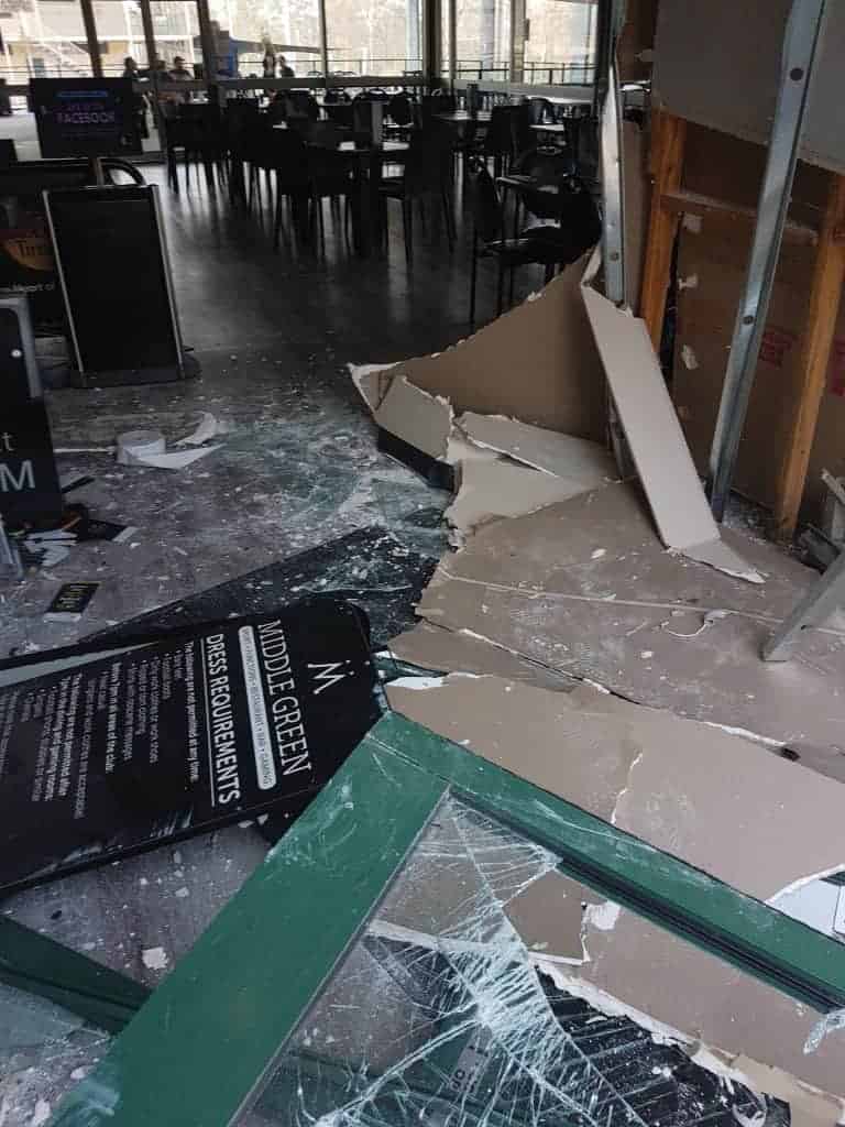 Although the community were shocked and outraged, it did not stop them from patronising one of their favourite local dining venues. “It was great to see the community come down to offer to clean up or arriving that same evening for a meal to support us even though we no longer have a front door†said David McBey, Manager of Middle Green. “We are very thankful that we live in such a supportive community even though we look closed!â€Â