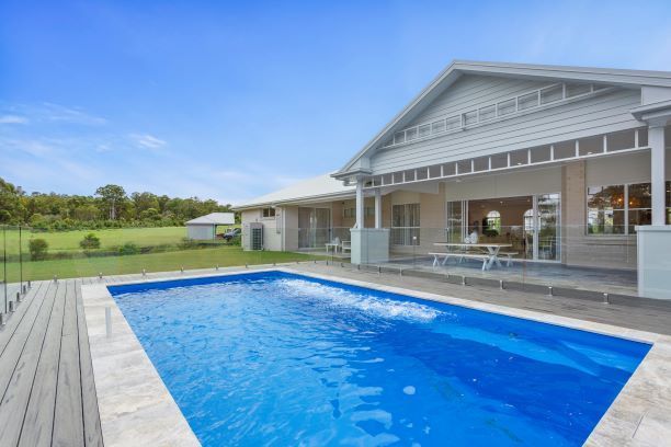 It features a seamless flow from the living and dining area through large stacking doors and a servery out onto a large under-roof alfresco, kitchenette and pool area.